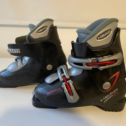 Lasten laskettelumonot joiden ulkomitta 271mm ja sisäpohjallisen pituus 23cm. Ollut käytössä lapsella, jonka kengän koko ollut 35-36. Siteet toimivat. Pinnassa käytön jälkiä.