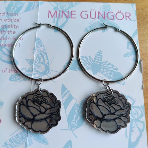 Myydään Mine Gungörin hologrammi simpukkakorvakorut. Jääneet korvakorupaljouden takia käyttämättä.