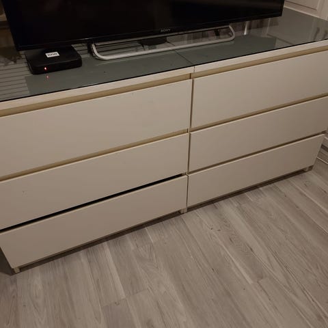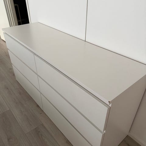 Myytävänä 6 laatikkoinen valkea Ikean MALM-lipasto. Lipasto on hyvässä kunnossa, ehyt ja siisti.