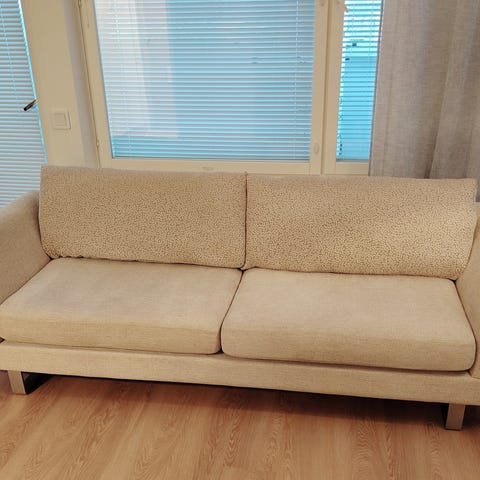 Erittäin siisti ja hyväkuntoinen kotimainen Askon sohva myydään tilanpuutteen vuoksi. Sohvan leveys 216, syvyys 90, korkeus 83, ist. korkeus 45.