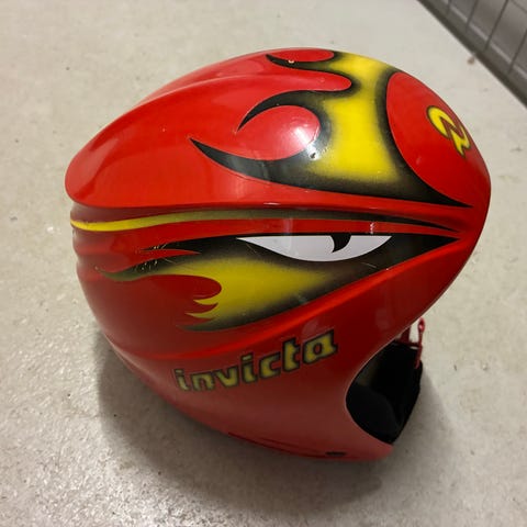 Elan Formula laskettelukypärä. Kouluikäisellä lapsella ollut muutaman kerran käytössä, mutta jäänyt pieneksi. Niskassa säätö, joka näkyy kuvassa