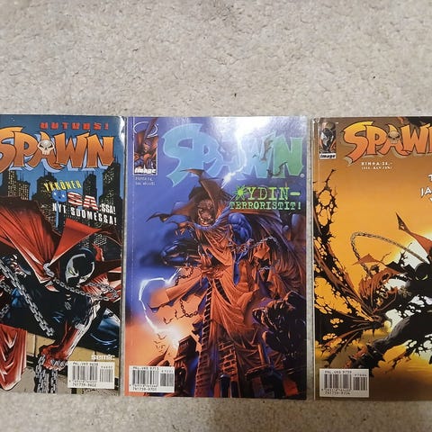 Spawn 35 kappaletta suomenkielisiä. Osassa on osoitelappu takakannessa kiinni.