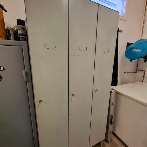 Hyväkuntoinen kaapisto. Käy hakemassa pikaisesti pois tulevan remontin alta. Pitää itse purkaa ja voin olla apuna... Liukuovet.