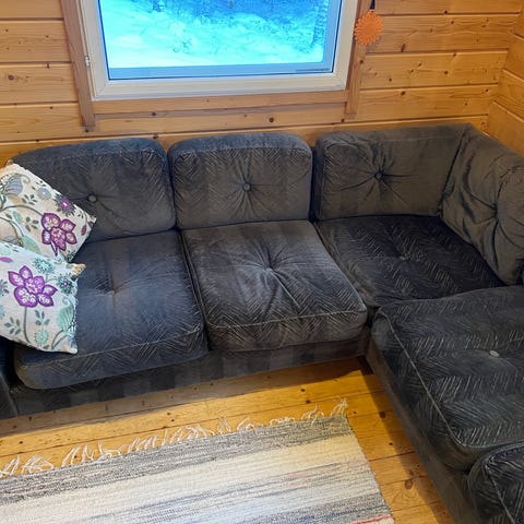 Koostuu kahdesta osasta. Väri harmaa/vedenvärinen. Siisti, ei mitään vikoja. Muutaman vuoden käytössä ollut,mutta liian suuri nykyiseen asuntoon. Pieniä käytön jälkiä voi löytyä kun tarkasti etsii.