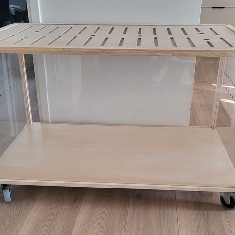 Avattavat etuovet, irrotettava verkkokatto ja taustalevy mukana.