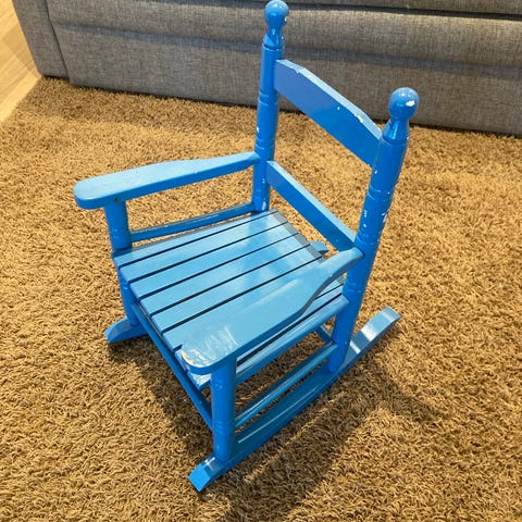 Lasten keinutuoli laiva, pituus 80cm, leveys 32cm, selkänojan korkeus 20cm.