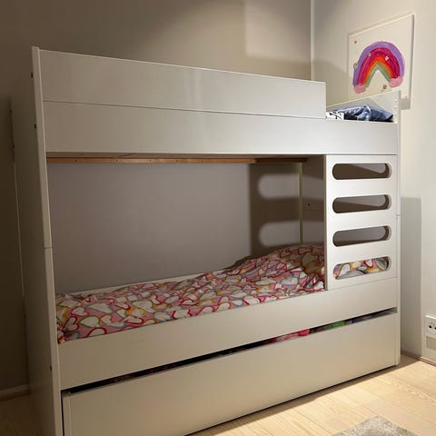 Myydään kauniin vaalea koivuvanerinen AVARoomin kerrossänky, koko165/70cm. Muuten uutta vastaava, mutta yläsängyn toisessa reunassa pientä nirhaumaa. Sängyn alla tilava vetolaatikko pyörillä, mukana annetaan myös patjat ja petauspatjat suojineen. Sängyt erotettavissa tarvittaessa kahdeksi erilliseksi sängyksi. Vain nouto.