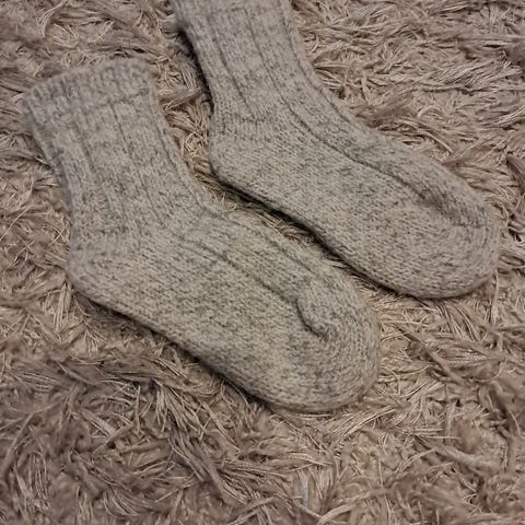 Naapurin mummon tekemät villasukat. Pari kertaa ollut jalassa. Varpaista kantapäähän 14cm