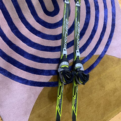 Fischer sukset 120cm, sauvat 90cm ja monot 33
