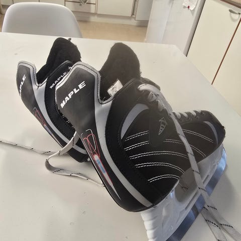 Käytön jälkeä on, mutta luistimet ovat jämäkät ja hyväkuntoiset. Ostajan kannattaa teroittaa.