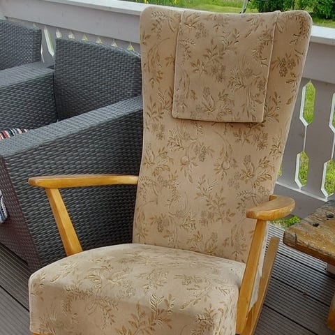 Iältään vanha keinutuoli. Ei hetku ei keiku. Eli kunto hyvä.
