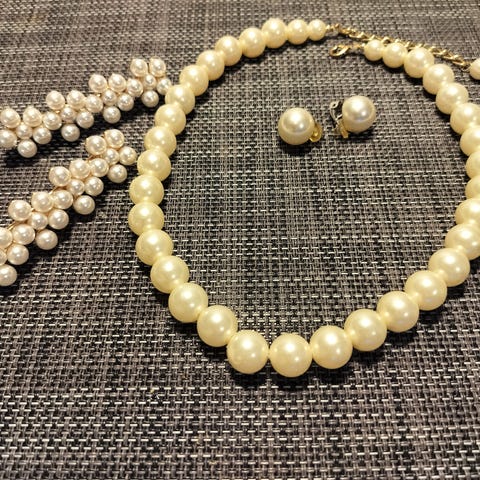 Myydään 1990-luvulla ostettu korusetti, sis. helmikaulakorun kullanvärisillä leopardeilla, pituus n. 49 cm sekä leopardikorvakorut klipseillä, korkeus n. 3,5 cm. Eivät siis vaadi reikiä korvissa. Korujen kokonaispaino on 70 cm. Erittäin vähän käytetyt, kunto oikein hyvä. Hinta 35 € + postimaksu.