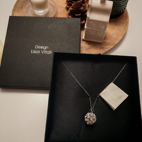 Kultakeskuksen valmistama kaulakoru Liisa Vitalin mallista "Leppäkerttu/Pitsi".