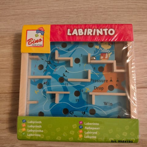 Myydään hyvässä kunnossa oleva labyrinttipeli. Kuula koitetaan saada radan läpi tasapainoilemalla ilman putoamista koloihin. Savuton karvaton talous. Kulkeutuu Tampereelle.