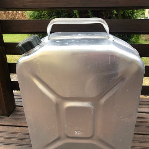 Metallinen 20 litran bensakanisteri, väriltään vihreä. Soveltuu polttoaineen säilytykseen ja kuljetukseen.