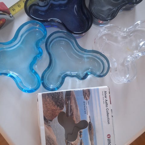 Myydään kolme Iittalan pientä, 98 mm, Aalto-maljaa. Värit vaaleansininen, omenanvihreä ja harmaa.
