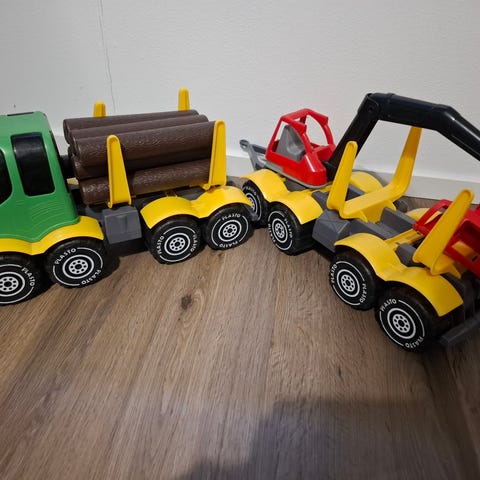 Muutaman kerran leikitty plasto tukkirekka+tukit 3kpl.