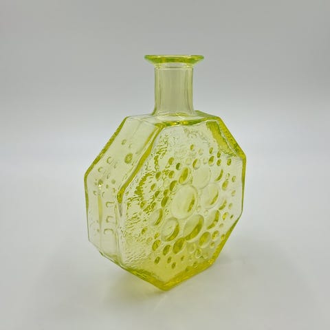 Nanny Still Stella Polaris Riihimäen LasiLasinen koristepullo, kuusikulmainen muoto, kirkas väri. Pullo on suunniteltu koristekäyttöön ja sopii sisustuselementiksi.