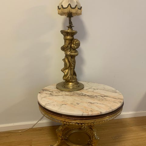 Antiikkinen pöytä marmorikannella ja puujaloilla
