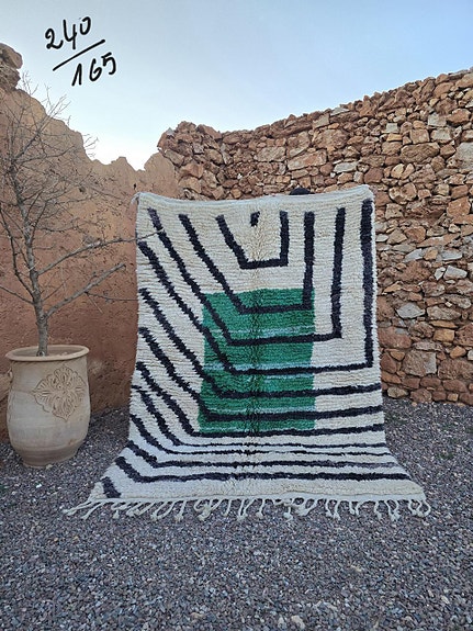 Tämän taidokkaasti kudotun maton ovat solmineet marokkolaiset berberinaiset Atlas-vuoristossa, perinteisissä kollektiiveissa. Matto on uusi / käyttämätön valmis käyttöön. Perinteen mukaisesti hapsut ovat yhdessä päässä – siellä, minne matto lopulta asetetaan.
