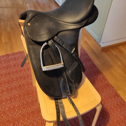 Myydään käytettynä ostettu, meillä vähällä käytöllä ollut Wintec koulusatula sinisellä kaarella, irrotettavat polvituet. Joko 17" tai 17,5", kokoa en löytänyt. Vastinhihnat uusitut nahkaiset, mukaan satulahuopa ja 70cm Fairfield satulävyö. Satulan vasemmalta puolelta puuttuu kaksi "nappia" (kuva), ei haittaa käyttöä. Postikulut kuuluvat hintaan, en lähetä sovitteelle.