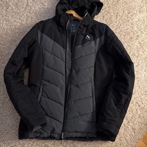 Hyvä lasketteluun kun löytyy hihatasku ja povitasku. Pitää jonkin verran vettä ja oikein hyvin tuulta. Säätökuminauha helmassa. Materiaali on helposti sähköistyvää, eli kuvissa saattaa näkyä tämän takia pieniä pölyhippuja. Yleisilmeeltään takki on siisti, ollut käytössä yhden talven.