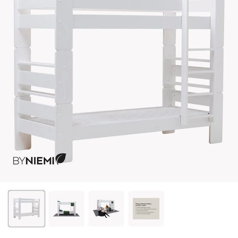 164,5 cm x 78 cm x 68 cm/sänky. Korkeus päällekkäin 136 cm.