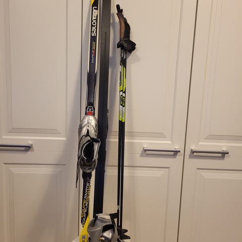 Välineet ovat olleet käytössä yhdellä lapsella 1,5 kauden ajan. Sen jälkeen säilytetty lämpimässä varastossa. Hyvä setti kilpaharrastusta aloittelevalle hiihtäjälle.