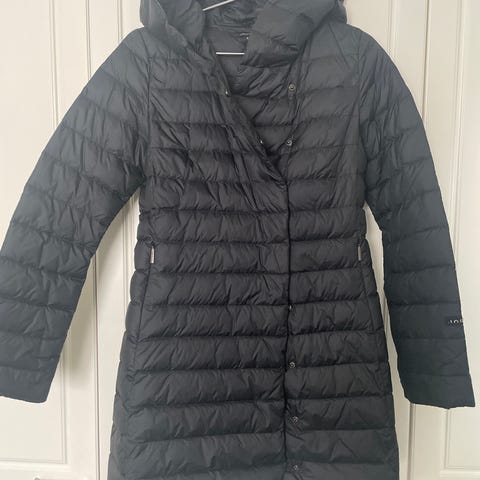 Pura x Joutsen kevytuntuvatakki koko S musta. Vyötäröllä ja helmassa kiristysmahdollisuus. Ei käytönjälkia ulkopuolella. Sisäpuolella vetoketjun ”tuuliliepeet” taitettu näkyvistä kolmella kangasteippipalalla, jotka saa helposti irti halutessaan.