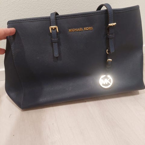 Michael Kors merkkinen lila laukku, ulkopuolisesti siisti.