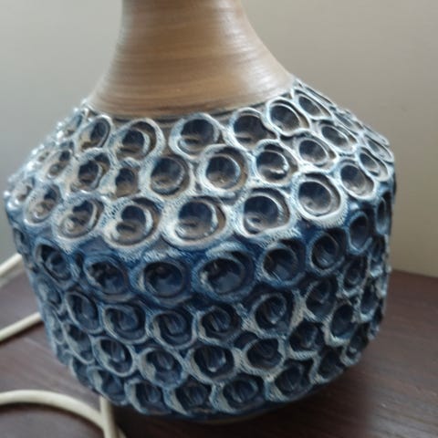 Lampun kunto on hyvä, täysin ehjä ja toimiva. Korkeus 33 cm. Valaisimen keramiikka on korkeatasoista Bavarian tuotantoa. Huomaa kuvassa 6 kuusi oleva teksti. Varsin huomaamaton onnitteluteksti, jota tuskin huomaa käytössä.
