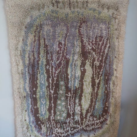 Aappo Härkösen suunnittelema Kaukametsä-ryijy, 100% villaa.