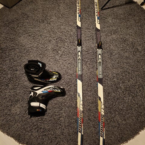 Salomon X-Drive 8.0 Sukset, pituus 187 cm, väri musta-valkoinen. Suksissa on mukana sauvat 145cm ka Karhu monot koko 40.