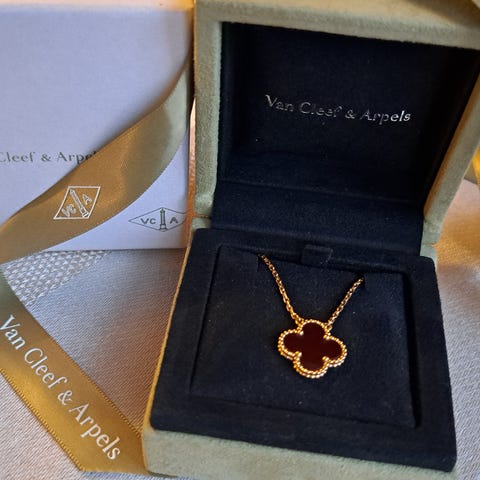 Myynnissä uusi eleganttinen ja käyttämätön van cleef kaulakoru. Kullattu neliapila kaulakoru. Pituus 45cm. Kaikki kuvassa olevat laatikot ja kassit tulee mukaan.