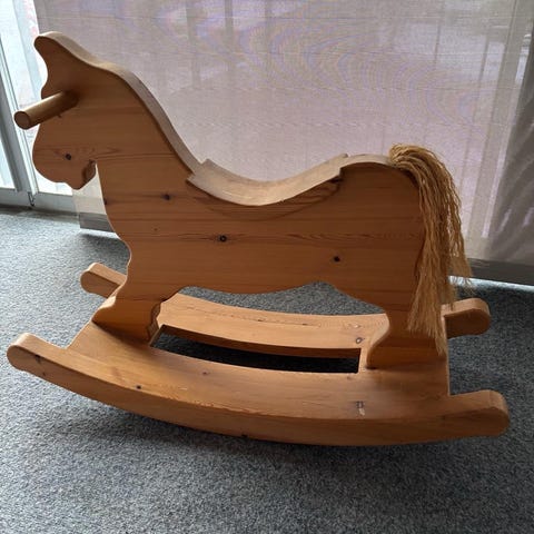 Hyvässä kunnossa oleva lasten keinuhevonen. Istuin pehmuste kuuluu hintaan ovh. 235€