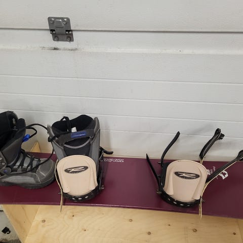 Mukaan lumilautakengät koko 35 ja kypärä. Lasitkin löytyy mukaan jos tarve.