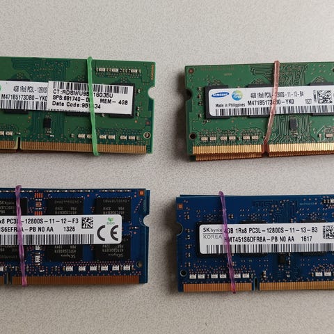 Myydään 8 kappaletta 4GB DDR3 muistikampoja läppäreihin. Vaihdettu pois isompien tieltä, kaikki muistit ovat täysin toimivia. Huom. kaksi kampaa ovat kaksirivisiä eivät välttämättä toimi samaan aikaan yksirivisen kanssa. Mutta samanlaisten kanssa toimii