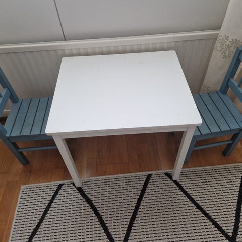 Niemen Tehtaiden Jysky sarjan laadukkaat tuolit ja pöytä. Pientä kulumaa, ehjä. Pöydän jalat saa ruuveilla irti kuljetusta varten.