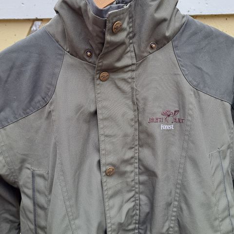 Kohtalaisessa kunnossa olevat jahti/jakt -takki. Kangas ja vetoketjut ehjät. Kuminauhat virttyneet. Kankaan vedenpitävyydestä ei tietoa, vanha mutta ehjä takki ylimääräisenä.