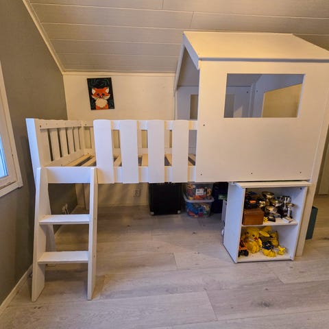 Tällä hetkellä tikkaat irrotettuna, jotta mahtuu oviaukosta, tarvittaessa voidaan purkaa pienempiinkin osiin.