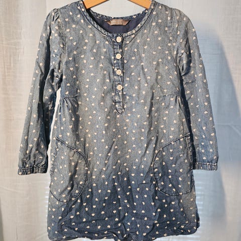 Puuvillainen klassinen ruutumekko pitkillä hihoilla koko 104 cm.