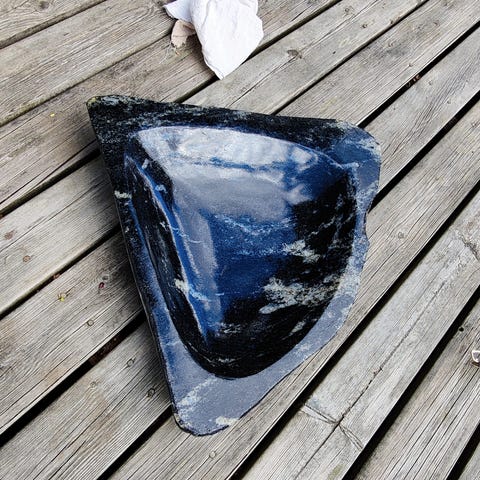 Helena Tynellin rantakivet. Halkaisija 8 cm ja korkeus 4,5 cm. Ollut tuotannossa 1973 - 1976. Ehjä. Valkoinen läikkä joka näkyy kuvissa on heijastuma ikkunasta.