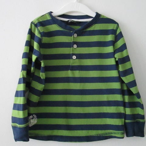 Laban mustavalkoraitainen lasten T-paita, joka on 100 % puuvillaa. Se on vähän käytetty ja hyväkuntoinen. Sen voi hakea tai voin lähettää.