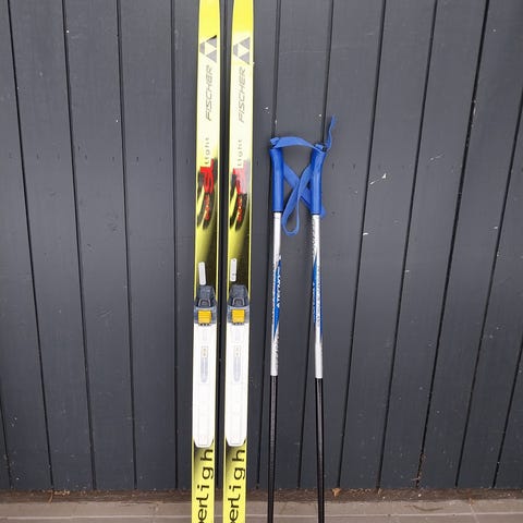 Fischer sukset n. 117cm, monot 32 ja sauvat 90cm