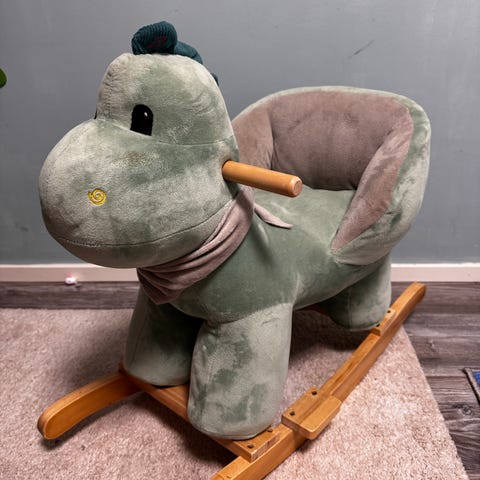 Jollyroom Keinuhevonen lastenhuonekalut vaaleanpunainen ja harmaa, pehmeä materiaali. Sopii lasten leikkeihin ja sisustukseen.