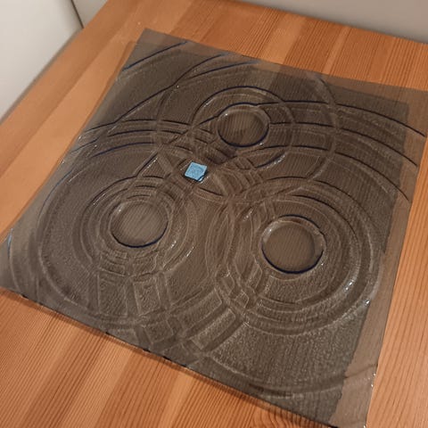 Kunto lähes kuin uusi, mutta yksi pieni mosaiikkikappale on hieman irtoamassa — muutama pieni tyhjä kohta, mutta tämä on lähes huomaamatonta eikä haittaa käyttöä.
