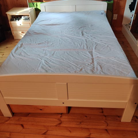 Messin merkkinen sängyn runko. Helppo purkaa osiin ja kuljettaa. Mukaan saa halutessaan patjan suoraan käytöstä.