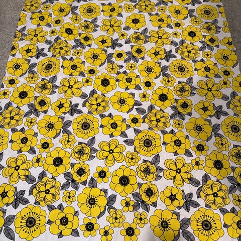 Marimekon keltainen Kestit-kangas, 100% puuvillaa. 145x120cm.