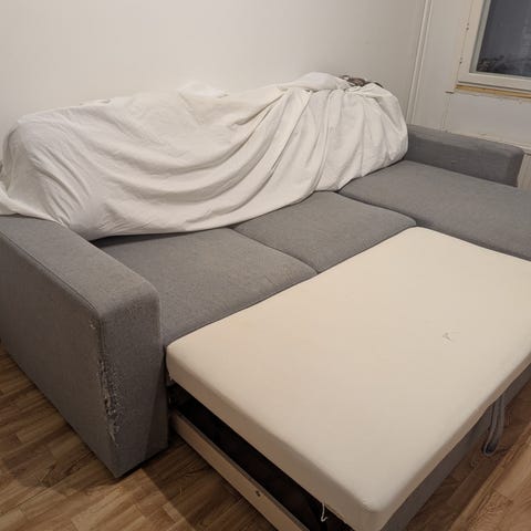 Haku Pitäjänmäestä. Ei valitettavasti saa juurikaan paloiteltua, selkäosan saa nostettua istuinosan päälle.