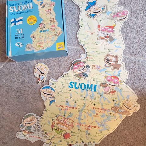 Tatu ja Patu palapeli. Palapelissä on 252 palaa. Palapeli on muuten siisti ja uudenveroinen, mutta yksi palapelin pala on korjattu. Sitä ei paljoakaan huomaan, kun palapeli on koottu. Katso kuvat palasta.